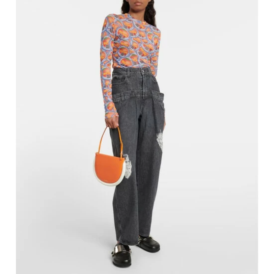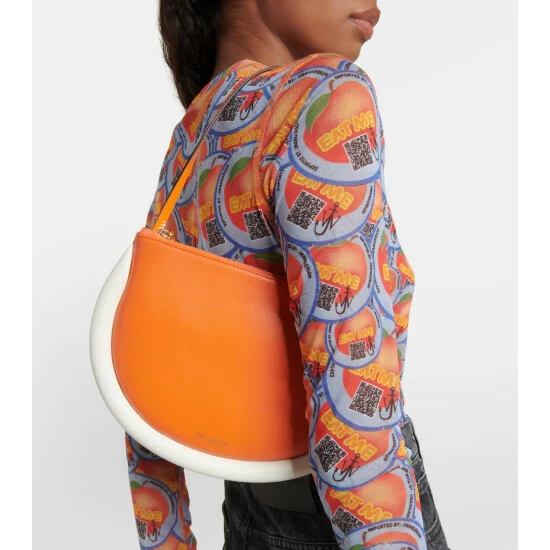 The Bumper-Moon leather shoulder bag from JW Anderson features an oversized tubular trim on its elegant crescent moon silhouette. This glamorous design can be worn on the shoulder or with its structured top handle.