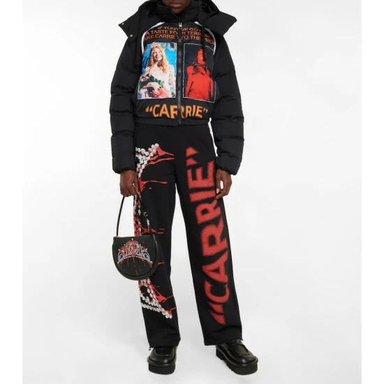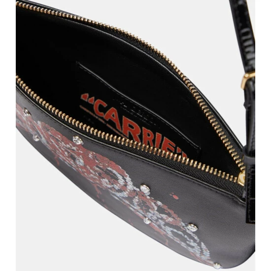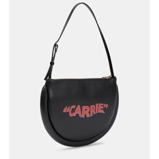 The Bumper-Moon leather shoulder bag from JW Anderson features an oversized tubular structure on an elegant crescent moon silhouette. This season the signature design is updated with a dramatic paint splash crown motif.