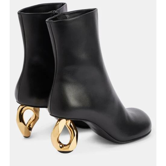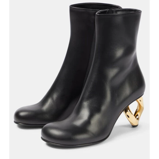 JW Anderson’s signature hardware makes an elegant appearance in the Chain ankle boots. Italian-crafted from polished calf leather, the ultra-sleek design rests on twisted chain-inspired heels and has rounded toes.