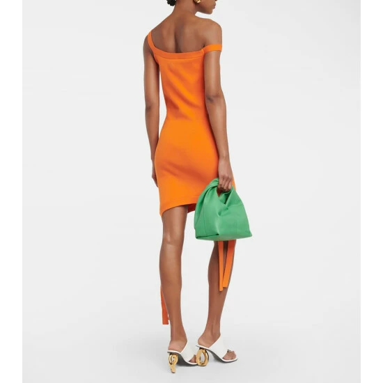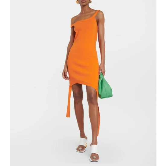 This minidress from JW Anderson is a fitted design with one off-shoulder strap. It falls to a asymmetrical hem with trailing deconstructed details.