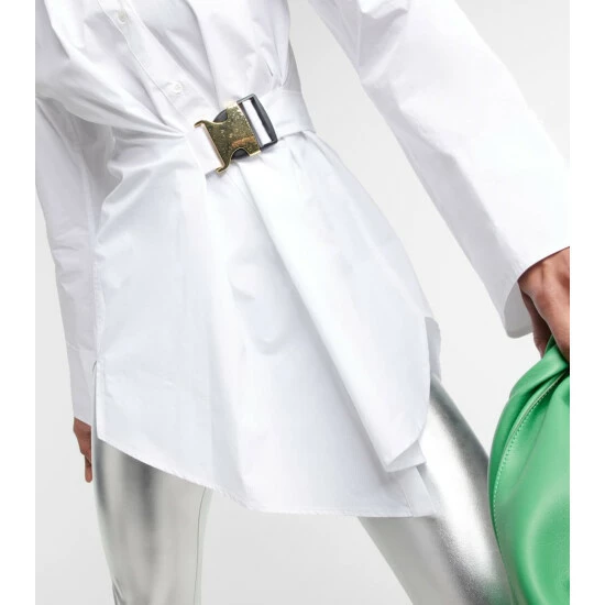 Embrace a unique twist on shirting with this JW Anderson design. Made from crisp cotton poplin, it’s defined by a textured, gold-toned buckle detail for adjustable, gathered cinching at the waist.