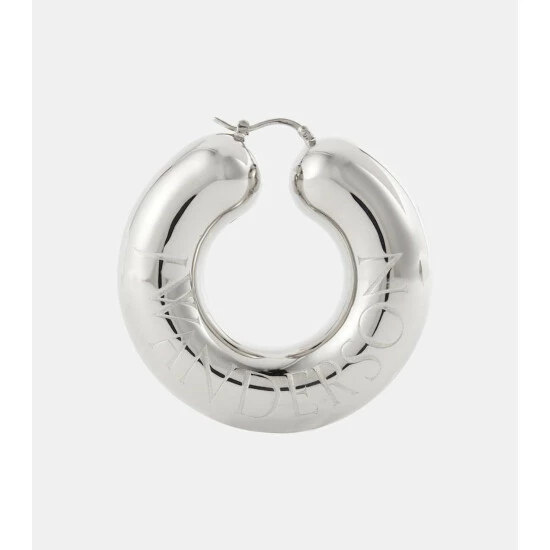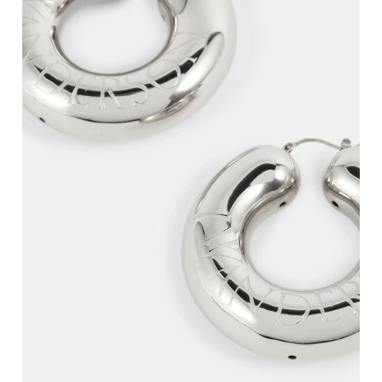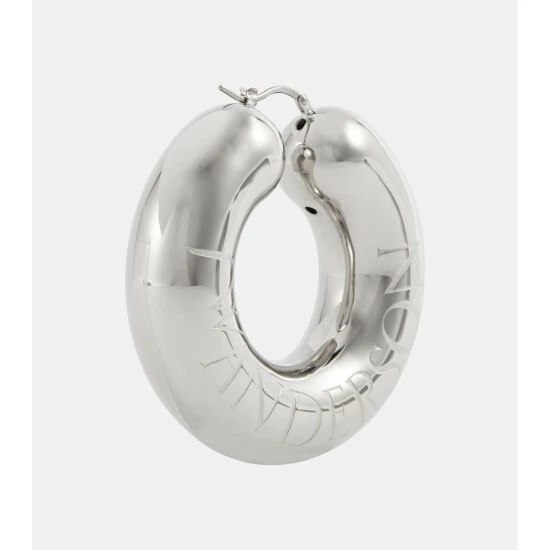 JW Anderson designs these hoop earrings with a chunky, tubular shape. Made from silver-plated metal, they have logo engravings and a mirrored finish.
