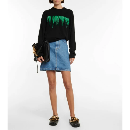 This JW Anderson sweater is knitted from virgin wool yarns in black and features a bright green intarsia slime logo. The design is finished with raglan sleeves and ribbed trims.
