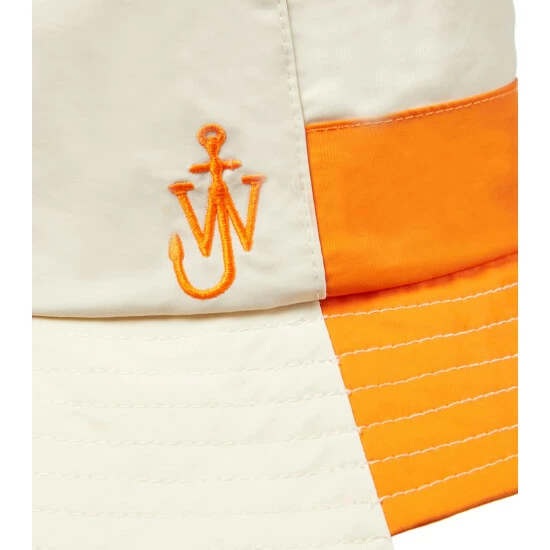 This bucket hat from JW Anderson is made from beige technical fabric. This style features an embossed logo patch, an all-over logo print, and branded chin-tie fastening.