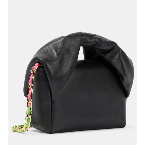 JW ANDERSON’s Twister shoulder bag is defined by its distinctive twisted top handle. Made from black leather, it has a detachable chain shoulder strap and a foldover top with magnetic fastenings.