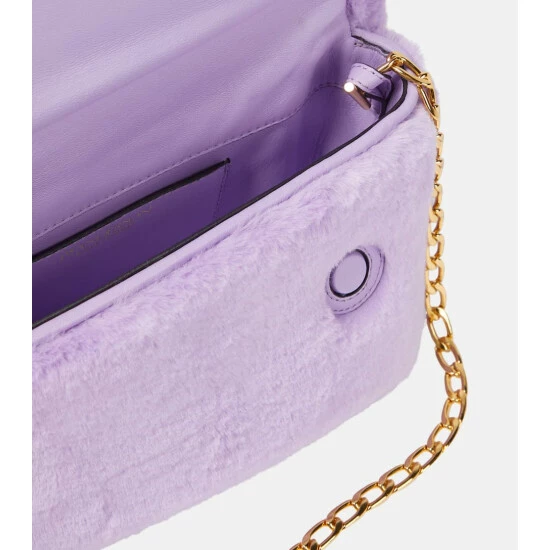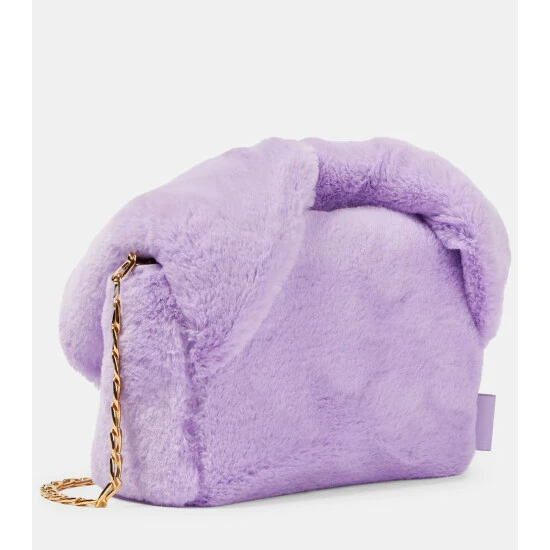 The Twister Midi crossbody bag from JW Anderson features the collection’s signature twisted top handle. This style has all-over faux fur detailing, an inner leather pocket, and a detachable gold chain.