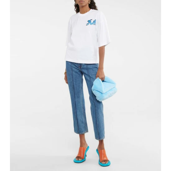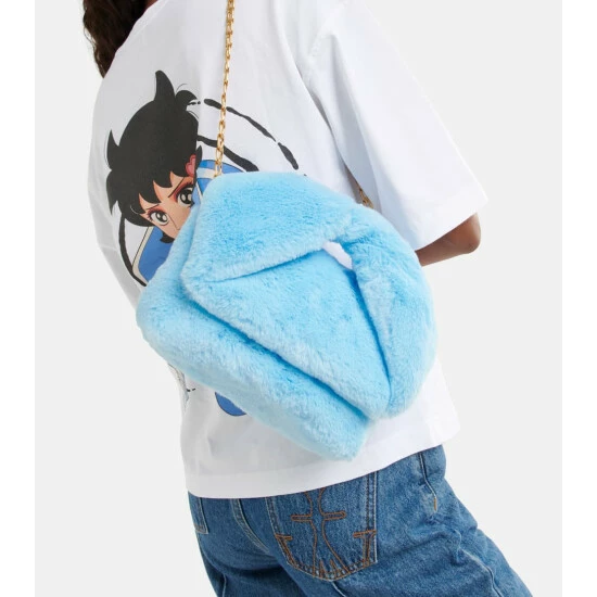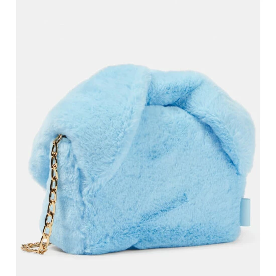 The Twister Midi crossbody bag from JW Anderson features the collection’s signature twisted top handle. This style has all-over faux fur detailing, an inner leather pocket and a detachable gold chain.