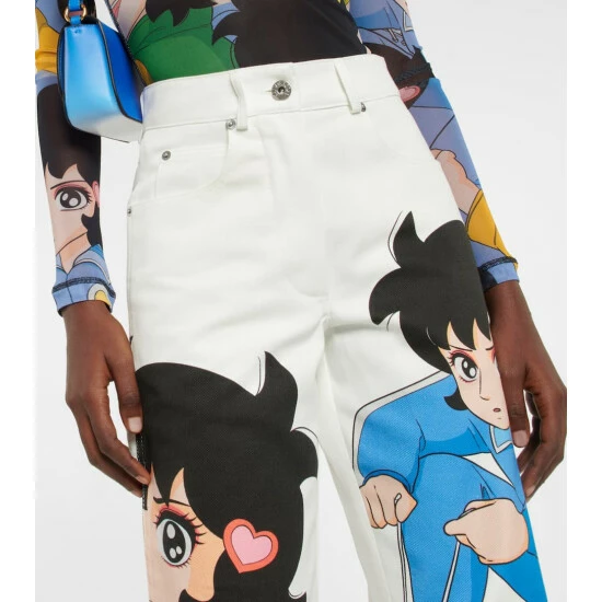 JW Anderson plays with popular culture in collaboration with the Korean anime Run Hany. This graphic design is made from cotton denim and features a digital print, a low-rise waist, and five pockets.