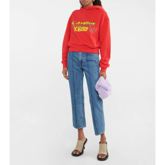 JW Anderson unveils a playful line inspired by the South Korean anime series Run Hany. Printed with dual logo lettering, this cotton jersey hoodie has a cropped fit.