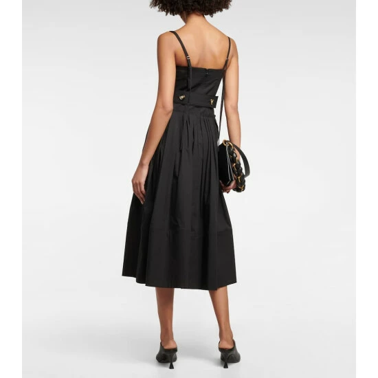 Simple sophistication is a Proenza Schouler signature – case in point is this midi dress. Made from a cotton-blend, it’s shaped with spaghetti-style straps, molded cups, a romantic sweetheart neckline, and lightly flared, pleated skirt.