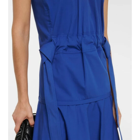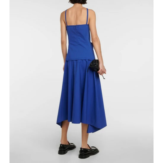 This dress from Proenza Schouler is made from a stretchy cotton-blend poplin. It has a halter neckline, a fitted waist with ruched detailing, and an asymmetric midi hem.