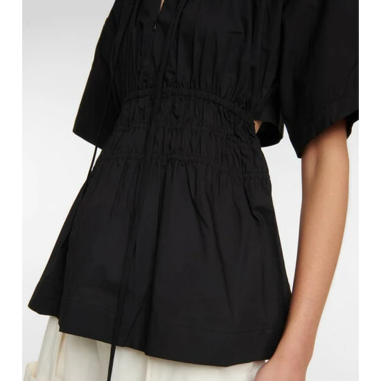 This top from Proenza Schouler will become a permanent piece in your spring rotation. Made from pure black cotton, this relaxed short-sleeve silhouette is cinched at the waist with drawstrings for a ruched effect.
