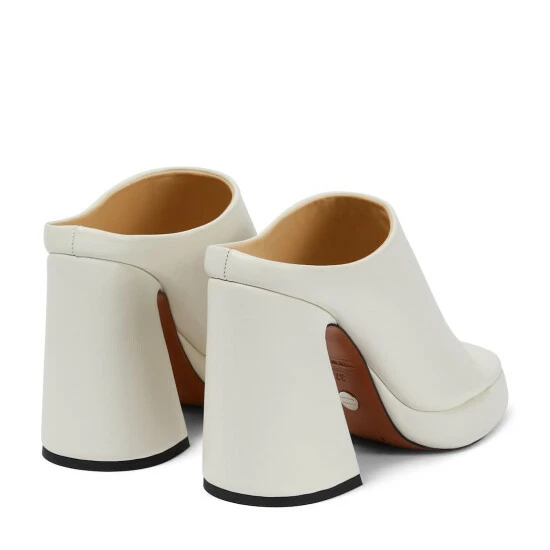 The Forma platform mules from Proenza Schouler are distinguished by their angled block heels and sleek silhouette. Made from leather, the slip-on design has rounded, open toes.