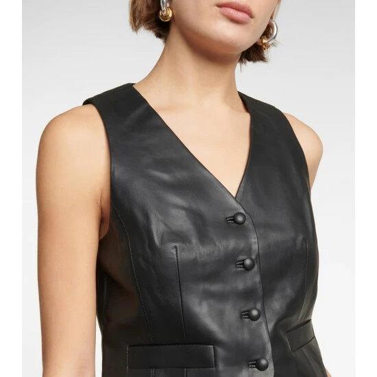 Layer on this leather vest from Proenza Schouler to add an edgy element to your look. Classically tailored to have a fitted silhouette, this design features a button front with two patch pockets.