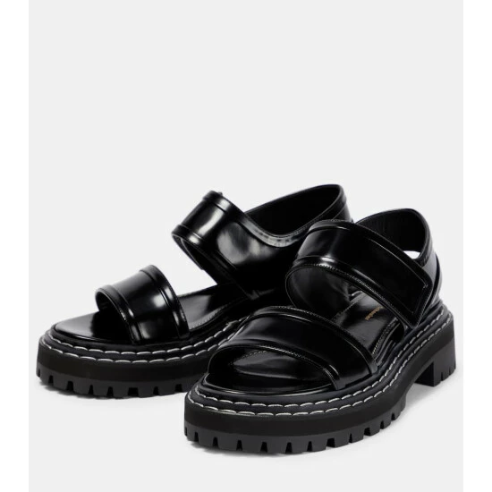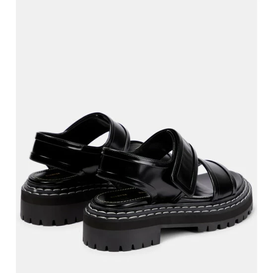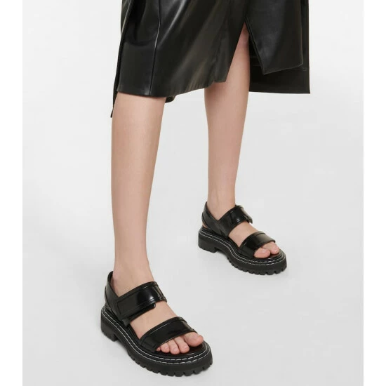 Proenza Schouler’s Lug sandals are made from brushed leather. Set atop chunky track soles with accent contrast stitching, they fasten with VELCRO® straps.
