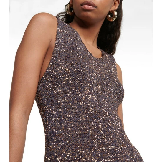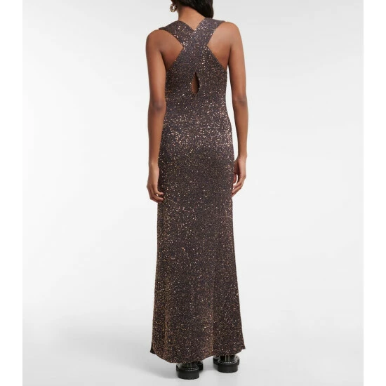 Dazzle on the dance floor in this gown from Proenza Schouler. Decorated all-over with sequins, this slim-fit design is shaped with a side-slit hem for a comfortable drape and crossover straps for an alluring keyhole cutout at the back.