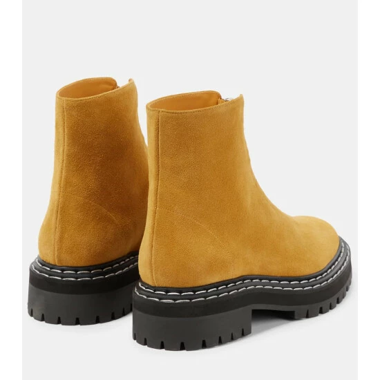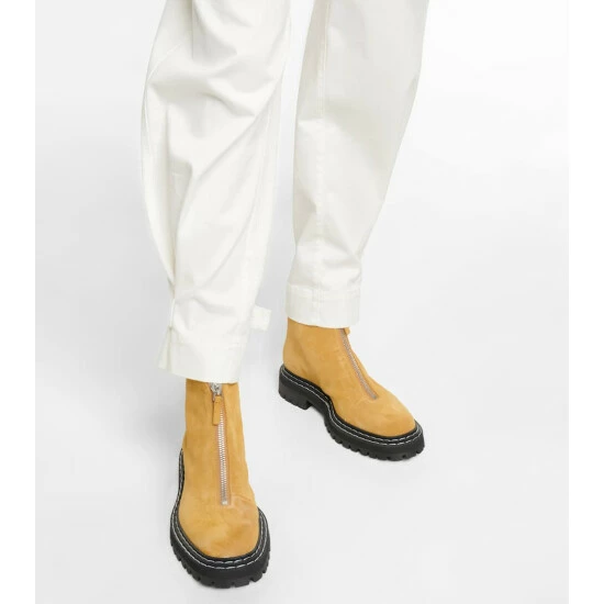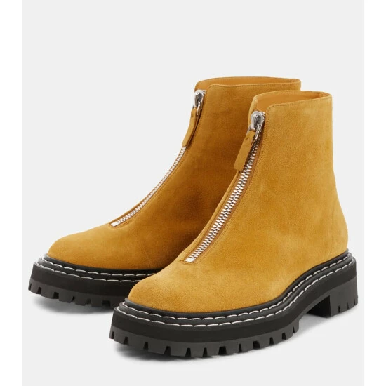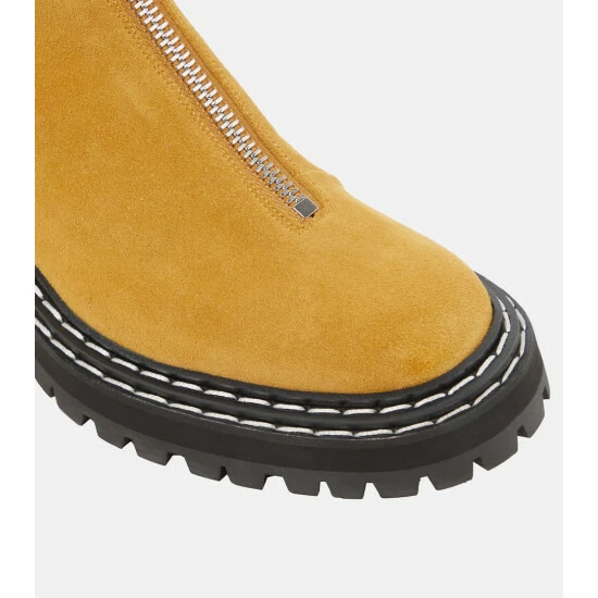 These ankle boots from Proenza Schouler are a sophisticated and edgy staple for your shoe closet. Made from suede, this style has a zip closure, white topstitching, and the brand-signature lug rubber sole.