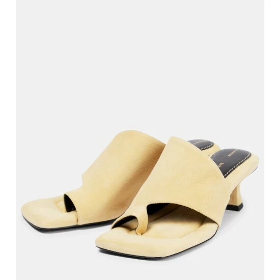 Proenza Schouler brings together design elements of mules and thong sandals with this pair. Made from soft suede, they have squared toes, padded insoles and flared kitten heels.