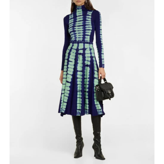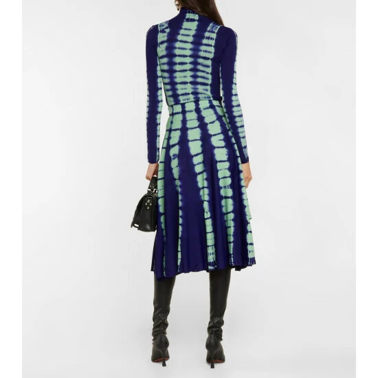 This skirt from Proenza Schouler has an A-line silhouette and a high-rise waist. The midi design showcases a colorful tie-dye motif.