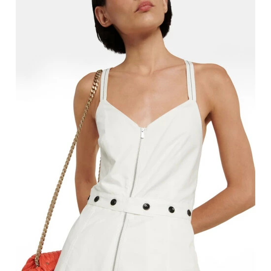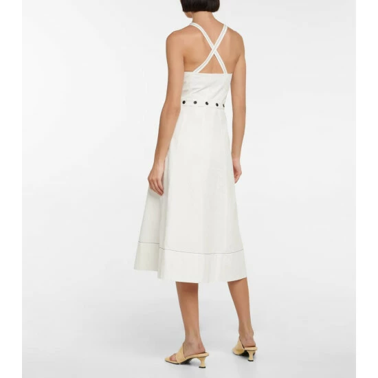 This midi dress from Proenza Schouler’s White Label is made from cotton and linen to a classic A-line silhouette. It’s distinguished by its crossover back straps, full frontal zipper and fitted waistband with buttons.