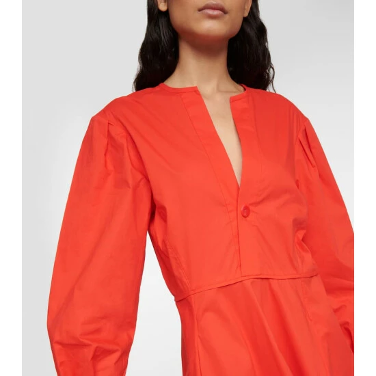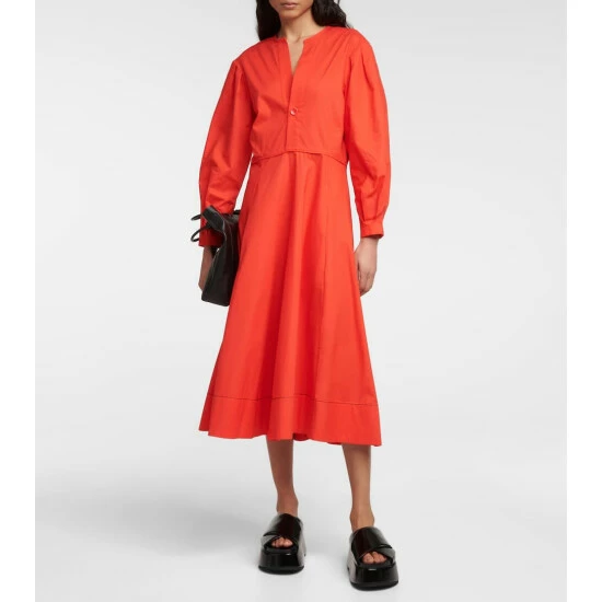 Proenza Schouler’s White Label – PSWL to insiders – diffuses its subversive main line into styles for everyday wear. This midi dress is made from cotton poplin with a V-neck buttoned front and blouson sleeves for a sophisticated look.