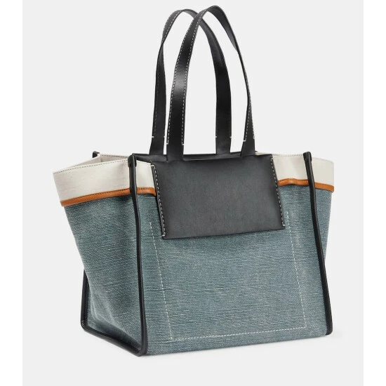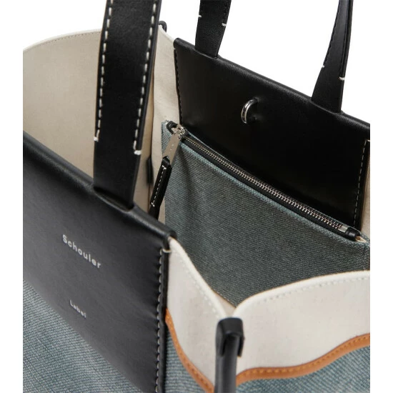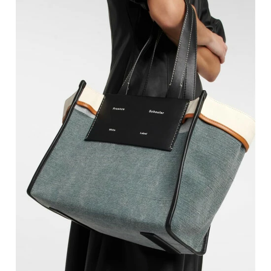 Proenza Schouler’s Morris Large tote is a roomy style with endless styling potential. This design is made from canvas with contrasting leather trims, topstitched handles, and a front panel bearing the brand’s White Label logo.