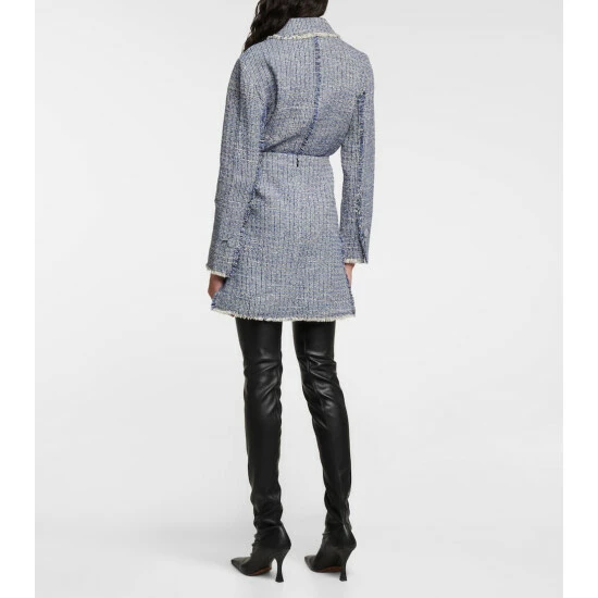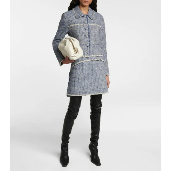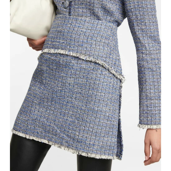 Wear this tweed miniskirt from Proenza Schouler’s White Label line for old-school sophistication. The curved fringe detail and frayed trim that adds textural interest to the design. Coordinate with the matching White Label tweed jacket.
