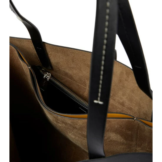 Proenza Schouler’s Twin tote bag is a roomy style for practical everyday wear. Made from black and yellow-mustard calf leather, the capacious design includes two compartments with a suede-lined interior and topstitched handles.