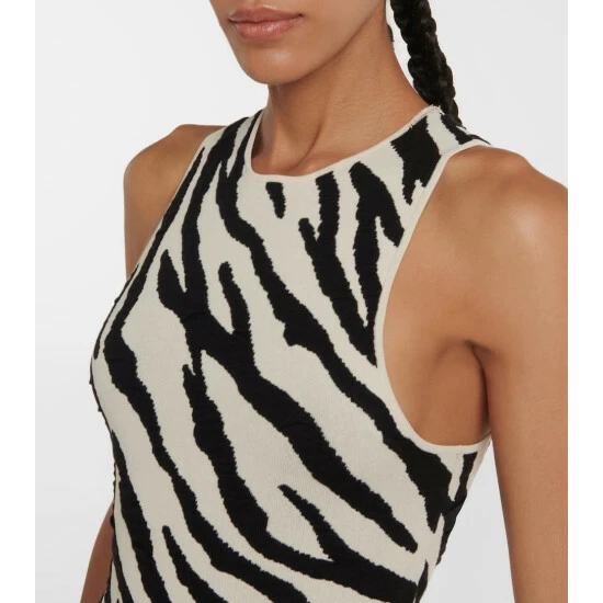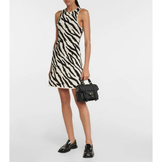 Make a bold statement in this minidress from Proenza Schouler’s White Label. Cut to a slim-fit silhouette, the sleeveless style features an eye-catching jacquard-knit zebra-stripe pattern.