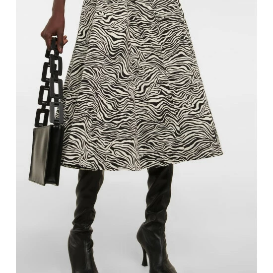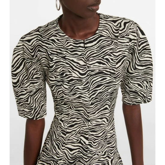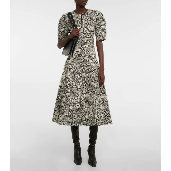 Bring some boldness into your wardrobe with this zebra-striped jacquard midi dress from Proenza Schouler. Cut to an A-line silhouette, the crewneck style has short puff sleeves and a concealed center-front zipper.